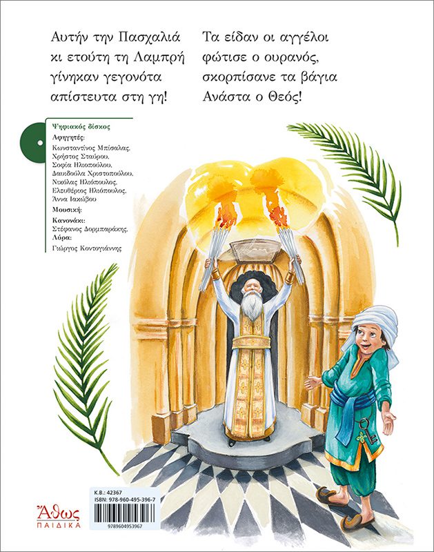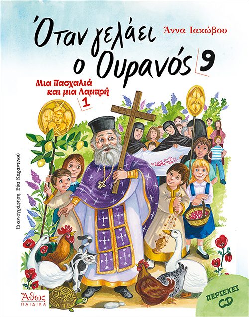Το ένατο βιβλίο της αγαπημένης σειράς Όταν γελάει ο Ουρανός, μοσχοβολά πασχαλιά και λιβάνι! Ποιος ήταν ο Λυκοθωμάς; Πώς έσωσε ο Άι – Μηνάς τους Χριστιανούς στην Κρήτη; Και τι είδους είναι τα …πατατοαυγά; Ποιος Γέροντας έζησε την Αποκαθήλωση του Χριστού, μια ξεχωριστή Μεγάλη Παρασκευή; Από τα Ιεροσόλυμα, μέχρι τη μακρυνή Ρωσία και την Κρήτη, αυτές οι ξεχωριστές ιστορίες, θα γεμίσουν με το Φως της Ανάστασης τις καρδιές μικρών και μεγάλων. Συνοδεύεται με audiobook με την αφήγηση των ιστοριών και πλούσια μουσική, που επιμελήθηκε ο Στέφανος Δορμπαράκης. Αφηγούνται: Κωνσταντίνος Μπίσαλας, Χρήστος Σταύρου, Σοφία Ηλιοπούλου, Δαυιδούλα Χριστοπούλου, Νικόλας Ηλιόπουλος, Ελευθέριος Ηλιόπουλος, Άννα Ιακώβου.